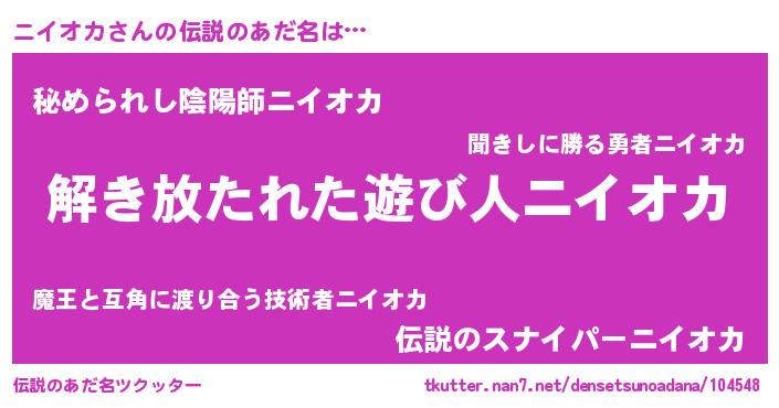 | ヒーロー風カッコイイあだ名 | 『魔戒騎士ニイ』『ウルトラニイオカマン』 |