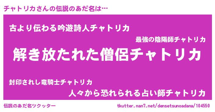 | 意味不明あだ名 | 『とにかく怪しいチャトリカ』 |