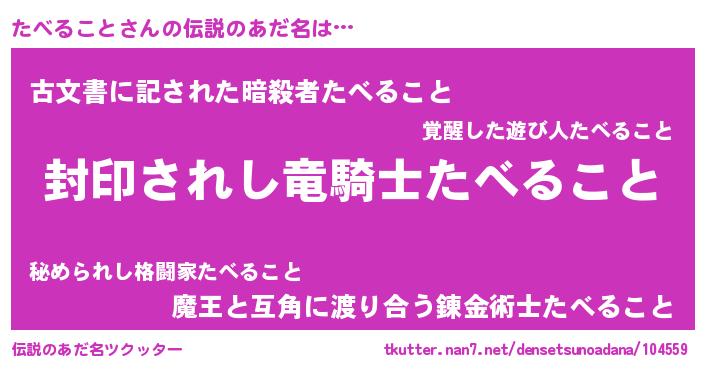 | 男性向けラノベタイトル風あだ名 | 『タベルコトアートオンライン』 |