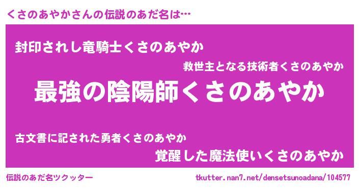 | 意味不明あだ名 | 『自称くさのあやか』 |