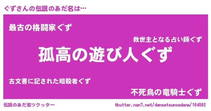 | ファンタジー風あだ名 | 『ファントムグズス』『エターナルグズー』 |