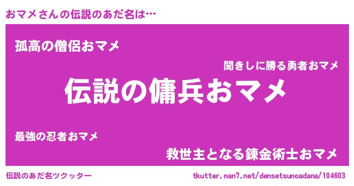| 男性向けラノベタイトル風あだ名 | 『おマメの憂鬱』『はたらくおマメさま!』 |