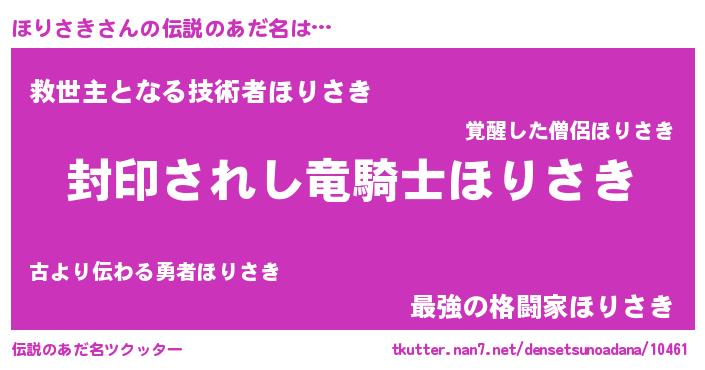 | 男性向けラノベタイトル風あだ名 | 『ほりさきに滅ぼされるだけの簡単なお仕事です』 |
