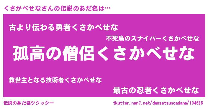 | 男性向けラノベタイトル風あだ名 | 『クサカベセナスレイヤー』 |