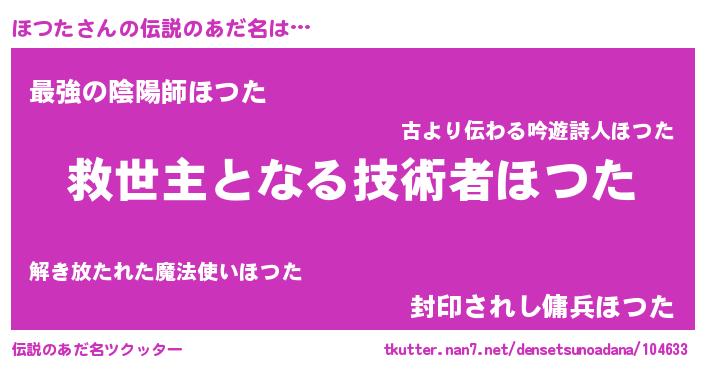 | ヒーロー風カッコイイあだ名 | 『天空の使者ほつた』『仮面ホツダー』 |