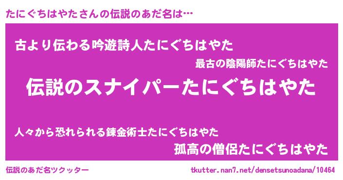| 胡散臭い通販商品みたいなあだ名 | 『必ず成功する霊験あらたかなお札…その名も「たにぐちはやた」』 |