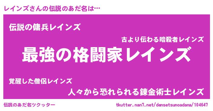 | 意味不明あだ名 | 『レインズフォーエバー』『自称レインズ』 |
