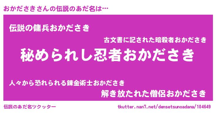 | 胡散臭い通販商品みたいなあだ名 | 『幸せが訪れる高級そうな壺…その名も「おかださき」』 |