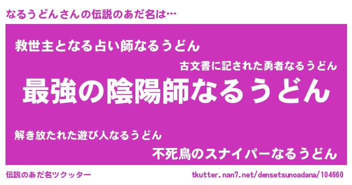 | ヒーロー風カッコイイあだ名 | 『仮面ナルダー』『愛の使者なるうどん』 |