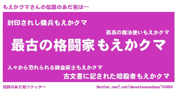 | 意味不明あだ名 | 『住所不定無職もえかクマ(6歳)』 |