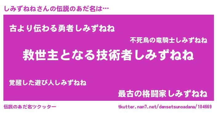 | ヒーロー風カッコイイあだ名 | 『慈愛の使者しみずねね』 |