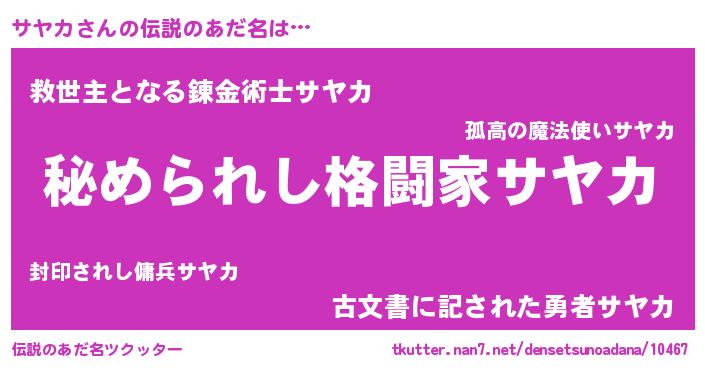 | ファンタジー風あだ名 | 『エターナルサヤカー』『ゼサヤトゥ』 |
