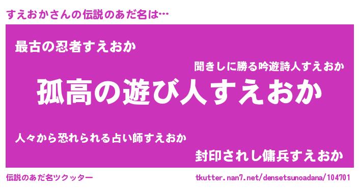 | 胡散臭い通販商品みたいなあだ名 | 『信頼と実績のペンダント…その名も「すえおか」』 |