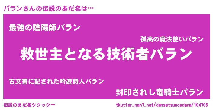 | ヒーロー風カッコイイあだ名 | 『慈愛の使者バラン』『仮面バラダー』 |