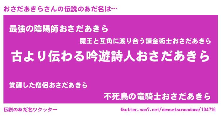 | 意味不明あだ名 | 『永久保存おさだあきら』 |