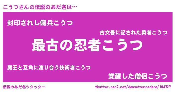 | 意味不明あだ名 | 『住所不定無職こうつ(68歳)』『自称こうつ』 |