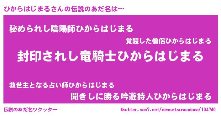 | 男性向けラノベタイトル風あだ名 | 『この素晴らしい世界にひからはじまるを!』 |