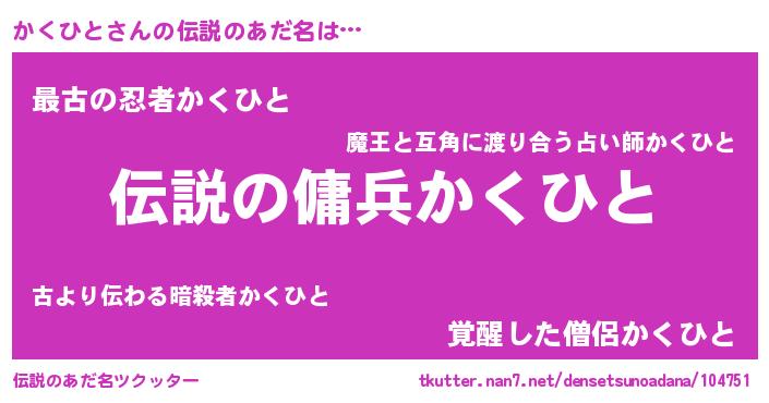 | ヒーロー風カッコイイあだ名 | 『スーパーカクヒト』『最強戦士カクヒト』 |