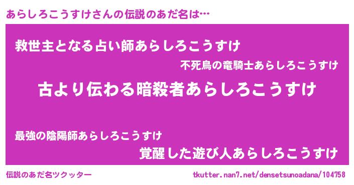 | 意味不明あだ名 | 『永久保存あらしろこうすけ』 |