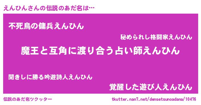 | ヘコむあだ名 | 『えんふぇ~』『えん太郎』『つくし』 |