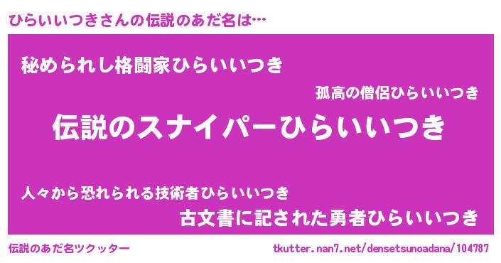 | 意味不明あだ名 | 『自称ひらいいつき』 |