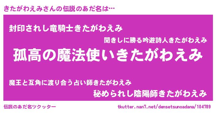 | 意味不明あだ名 | 『とにかく怪しいきたがわえみ』 |