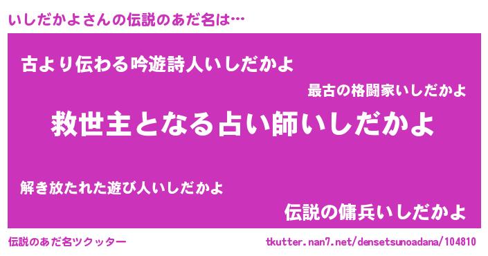 | 男性向けラノベタイトル風あだ名 | 『この素晴らしい世界にいしだかよを!』 |