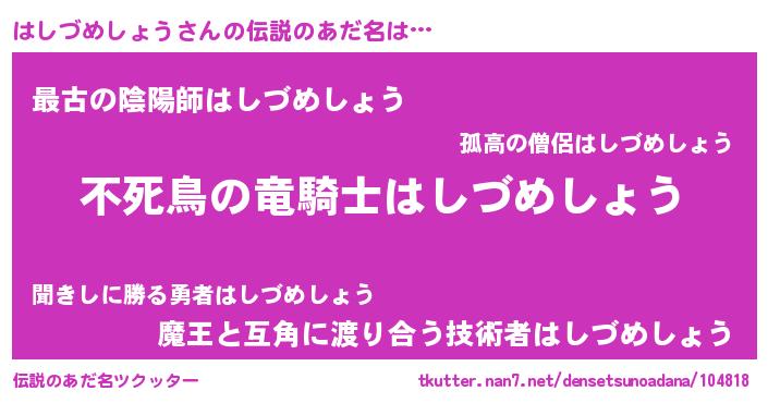 | ヒーロー風カッコイイあだ名 | 『最強戦士ハシヅメショウ』 |