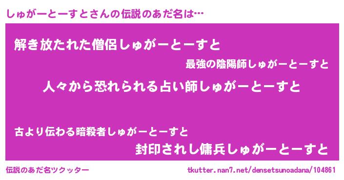 | ヒーロー風カッコイイあだ名 | 『正義の使者しゅがーとーすと』 |