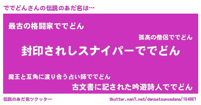 | 女子向けラノベタイトル風あだ名 | 『ででどんの玉の輿計画!』 |