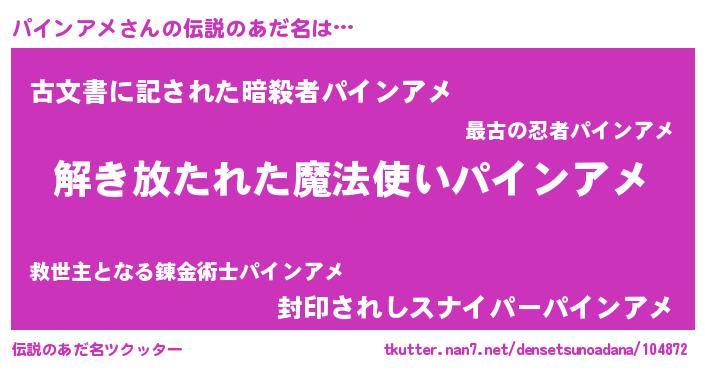 | 意味不明あだ名 | 『自称パインアメ』『永久保存パインアメ』 |