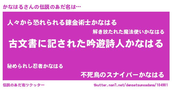 | 意味不明あだ名 | 『自称かなはる』『永久保存かなはる』 |