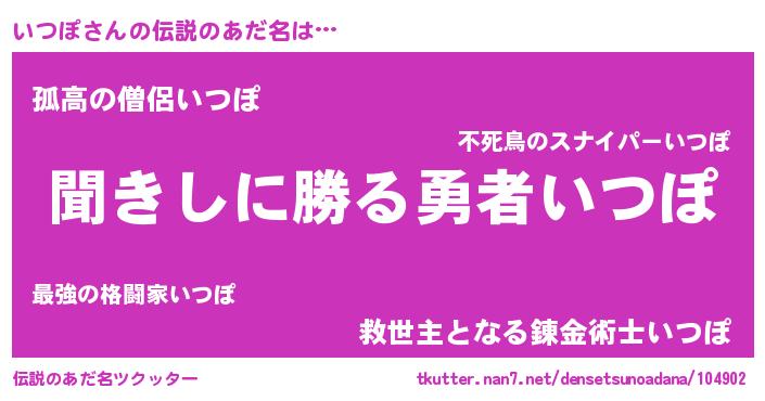 | 胡散臭い通販商品みたいなあだ名 | 『絶対に幸福をもたらす水素水…その名も「いつぽ」』 |