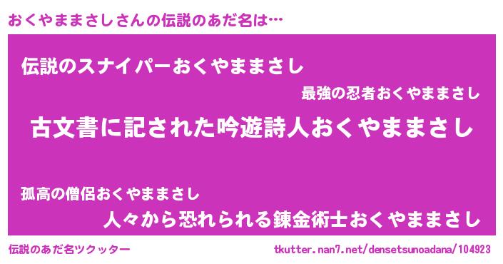 | 意味不明あだ名 | 『永久保存おくやままさし』 |