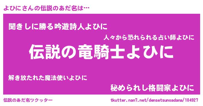 | 胡散臭い通販商品みたいなあだ名 | 『必ず成功するブレスレット…その名も「よひに」』 |