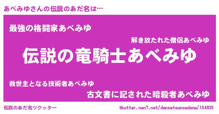| 男性向けラノベタイトル風あだ名 | 『あべみゆの憂鬱』『緋弾のアベミユ』 |