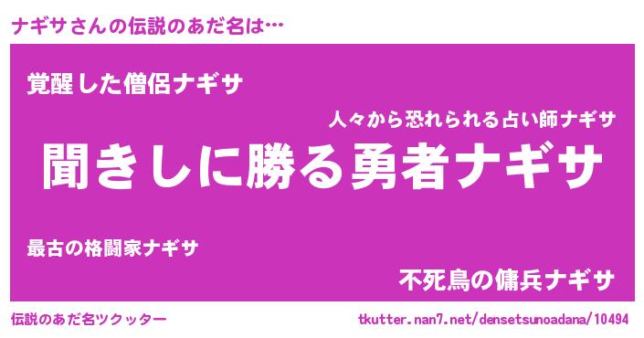 | 女子向けラノベタイトル風あだ名 | 『異世界で失敗しない100のナギサ』 |