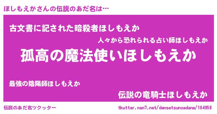 | 女子向けラノベタイトル風あだ名 | 『ほしもえかアンティーク』 |