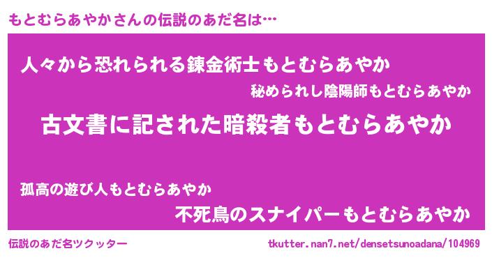 | 意味不明あだ名 | 『自称もとむらあやか』 |
