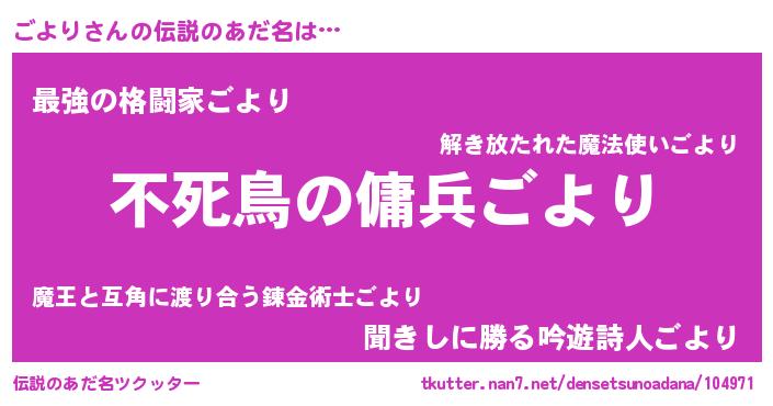 | 胡散臭い通販商品みたいなあだ名 | 『モテモテ間違いなし水晶球…その名も「ごより」』 |