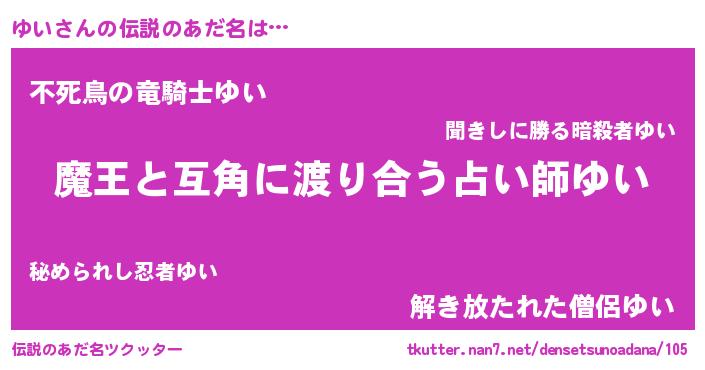 | ポケモン風あだ名 | 『ユックウザ』『ユーイイ』『ヒユイ』 |