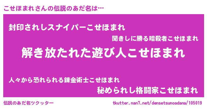 | ヒーロー風カッコイイあだ名 | 『幻影騎士コセ』『スーパーコセホマレ』 |