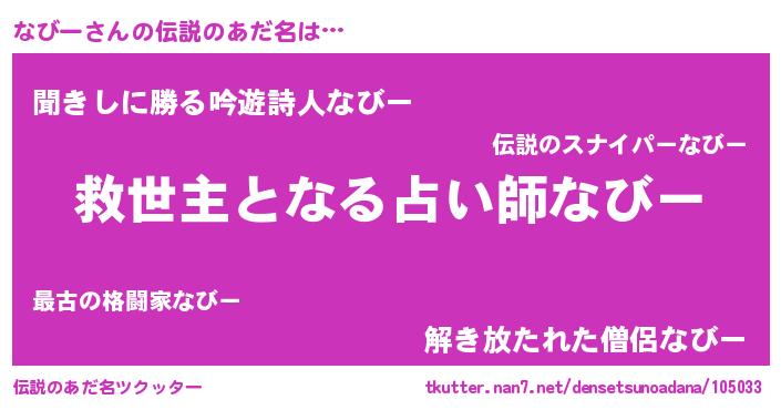 | ヒーロー風カッコイイあだ名 | 『慈愛の使者なびー』『ネオナビー』 |