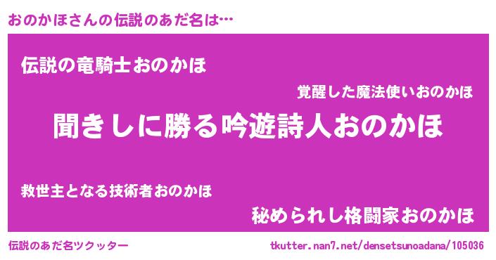 | 男性向けラノベタイトル風あだ名 | 『緋弾のオノカホ』『オノカホスレイヤー』 |