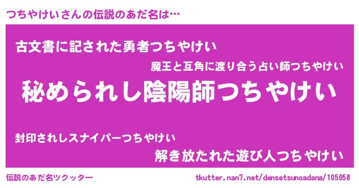 | 意味不明あだ名 | 『自称つちやけい』『永久保存つちやけい』 |