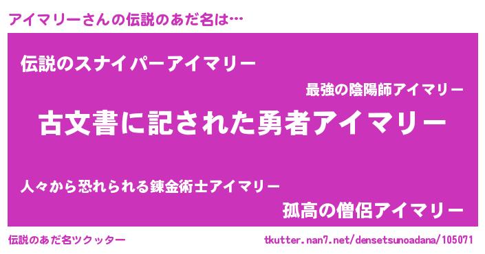 意味不明あだ名 | 『永久保存アイマリー』『自称アイマリー』 |