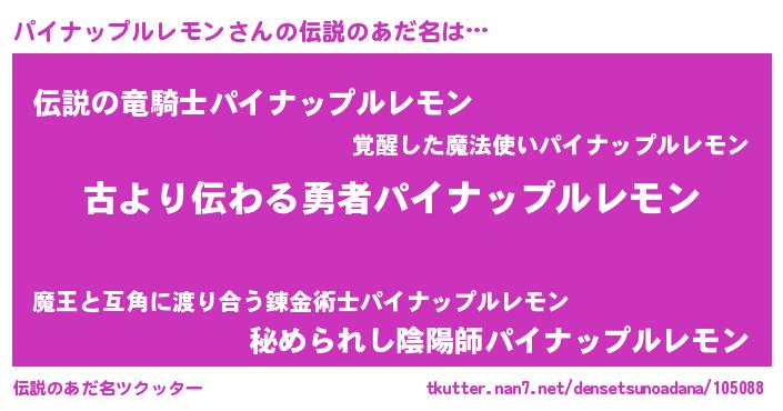 | ヘコむあだ名 | 『パイナップルレモン(震え声)』『パイにー』 |