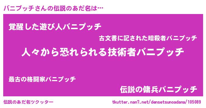 | ヘコむあだ名 | 『バニを』『バニもー』『酢こんぶ』 |