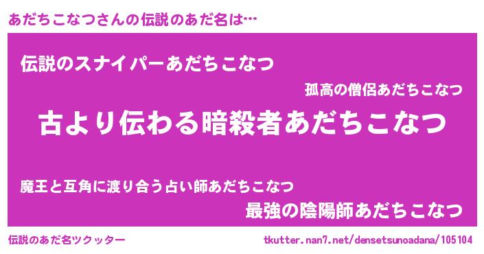 | ヒーロー風カッコイイあだ名 | 『ネオアダチコナツ』『仮面アダダー』 |