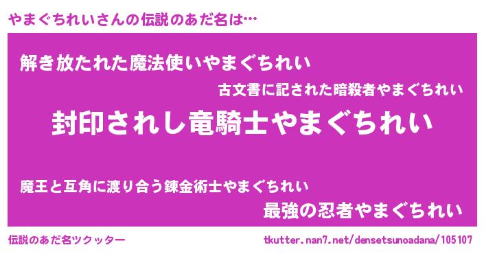 | 胡散臭い通販商品みたいなあだ名 | 『億万長者になれるブレスレット…その名も「やまぐちれい」』 |